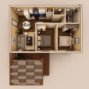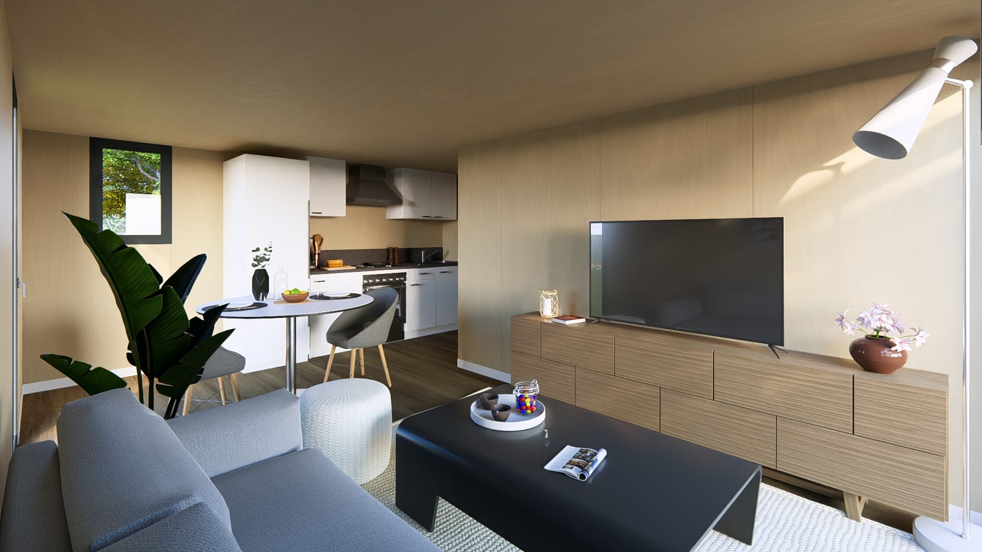 Greenom conçoit ses modules en conformité avec la réglementation RE 2020, garantissant ainsi des performances énergétiques optimales et un impact environnemental réduit. Chaque projet est pensé pour allier confort, innovation et respect des normes en vigueur, assurant une qualité durable et responsable pour tous nos clients. ( description de l’habitat )