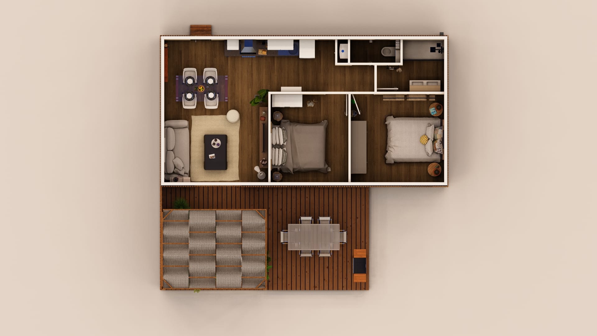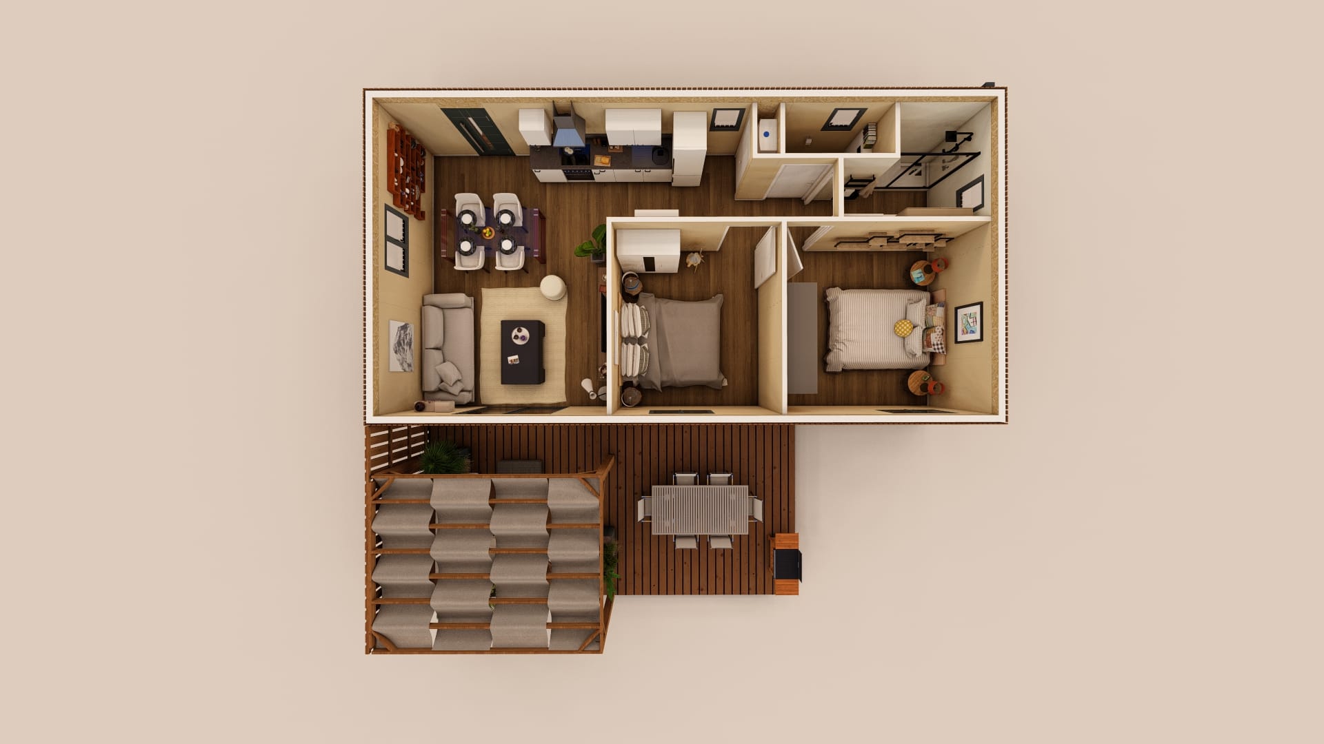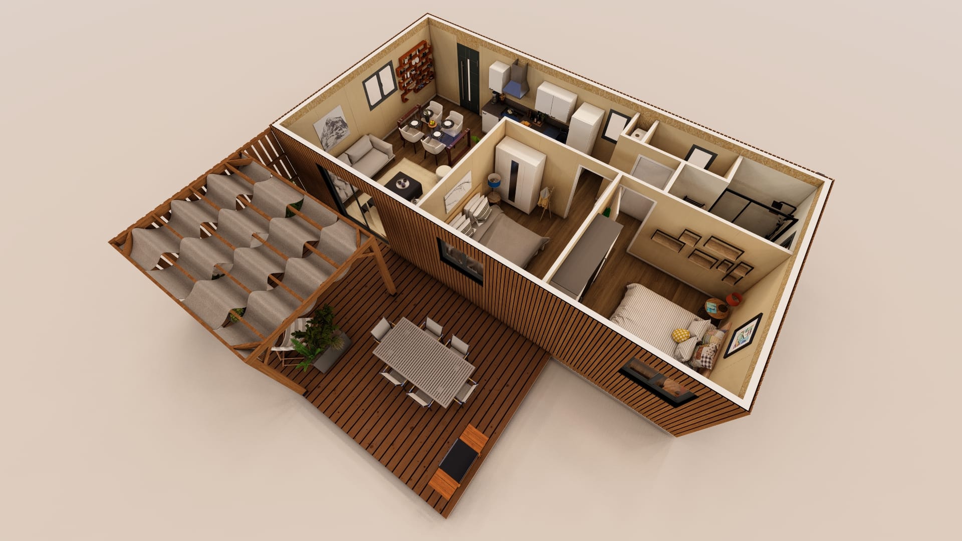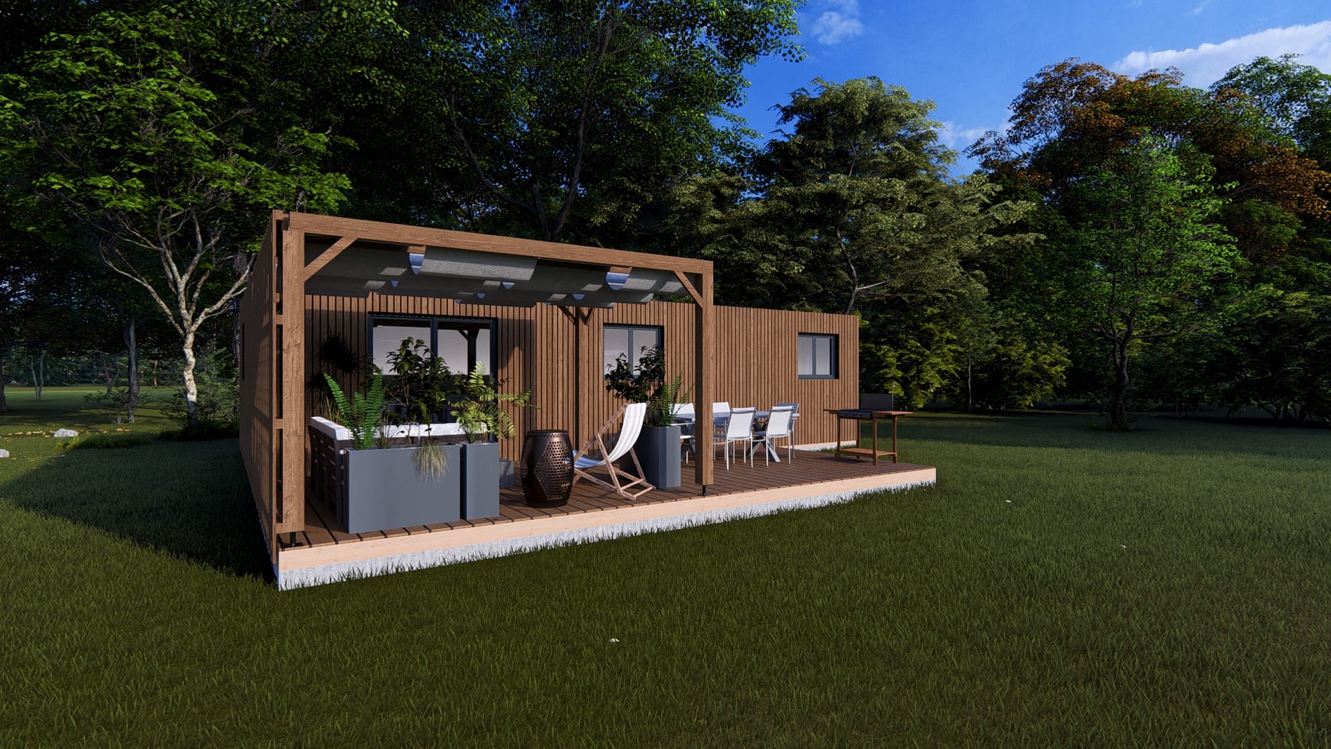• Terrasse + pergola + voilage + bardage terrasse