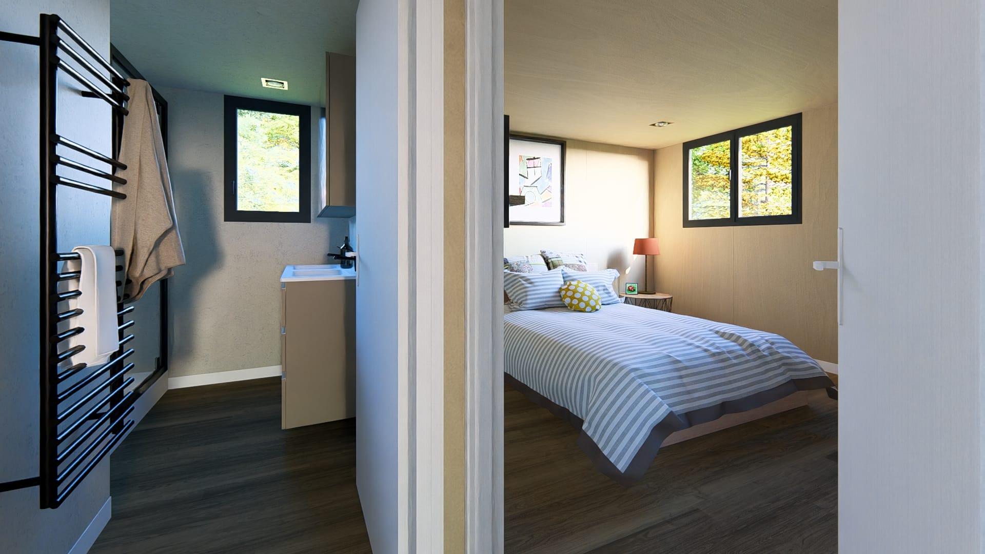 Grâce à notre processus de préfabrication en atelier, 90 % de votre module est construit avant même d’arriver chez vous. Cela permet de réduire considérablement les nuisances, les imprévus et les délais sur place.