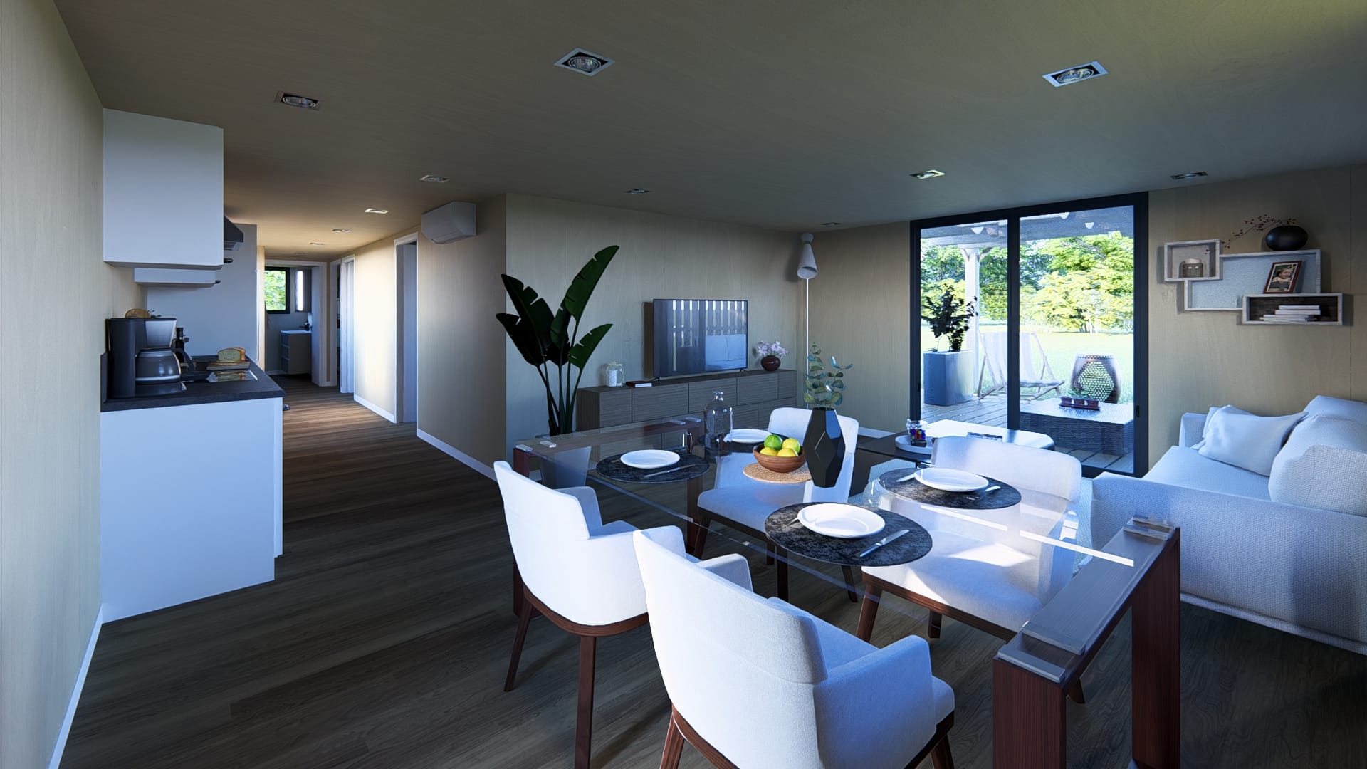 Greenom conçoit ses modules en conformité avec la réglementation RE 2020, garantissant ainsi des performances énergétiques optimales et un impact environnemental réduit. Chaque projet est pensé pour allier confort, innovation et respect des normes en vigueur, assurant une qualité durable et responsable pour tous nos clients. ( description de l’habitat )
